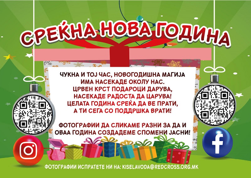 Децата што ќе ја дочекаат Новата година во болница, дечињата со одредена попреченост, како и децата од социјално загрозени групи не се оставени на маргините во овие празнични денови, постојат хероите-волонтери од Црвениот крст на Македонија – Општинска организација Кисела Вода, кои и оваа година се погрижија за тоа и на нивните лица да заблеска насмевка поради пакетче полно со слатки задоволства.